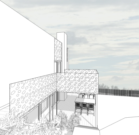 Huset har kompletterats med takterrass samt terrasser mot öster och väster för att ytterligare tillvarata havsutsikt samt morgon- och kvällssol. Befintliga räckesfronter och fasadpaneler har ersatts med oregelbundet perforerade plåtfronter i guldeloxerad aluminium. Tegelfasaden har säckskurats så att det bakomliggande fasadteglets textur framträder genom putsen. Ett längsgående växthus har lagts till den västra fasaden utanför köket. Ett spa med anslutande gym har tillkommit.